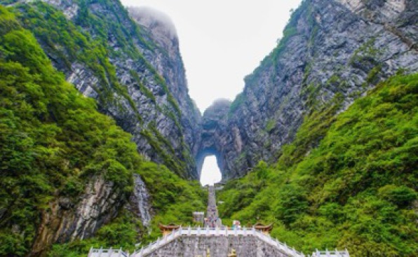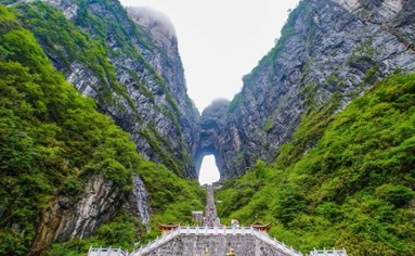 Tianmen Mountain: è situato nel centro di Zhangjiajie, per raggiungere la cima del monte è possibile prendere la funivia più lunga del mondo. Con partenza dalla stazione in centro città, percorre circa 7,5 km in 30 minuti e regala una vista mozzafiato su tutto il paesaggio sottostante. Man mano che la funivia si avvicina alla vetta, potete rilassarvi e ammirare dall'alto la strada delle 99 curve e le foreste di sempreverdi. la Porta del Paradiso (Tian men), è un arco naturale formatosi a seguito di una frana e successivamente scavato dall'acqua e dagli agenti atmosferici.