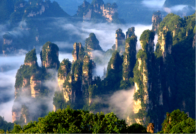 Wulingyuan: è stata inserita nella lista dei Patrimoni Mondiali dell'Umanità UNESCO. Il parco è diviso in più aree, che comprendono le montagne fluttuanti di Avatar nella zona di Yuanjiajie, il monte Tianzi, la riserva naturale della valle Suoxi e Yangjiajie. All'interno del parco si trova Bailong Elevator, l'ascensore esterno più alto del mondo che permette di raggiungere la parte più alta di Yuanjiajie in 90 secondi.